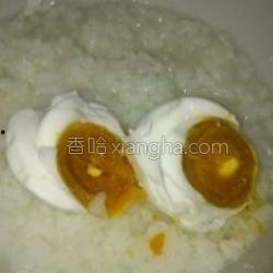 1. 将咸蛋煮熟,去壳,切成小块。