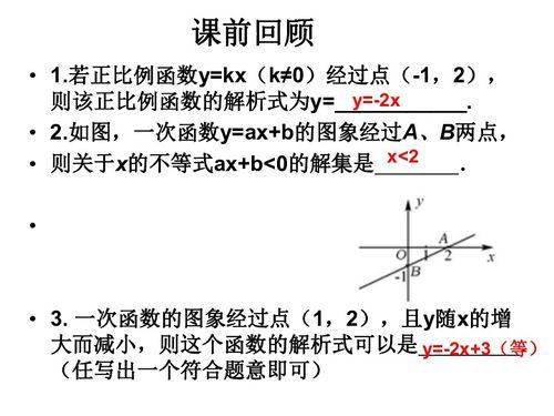 首先,让我们来回顾一下一次函数的定义。一次函数,也称为线性函数,通常表示为y = ax b的形式,其中a和b是常数,x是自变量,y是因变量。这个简单的公式,却蕴含着丰富的数学奥秘。